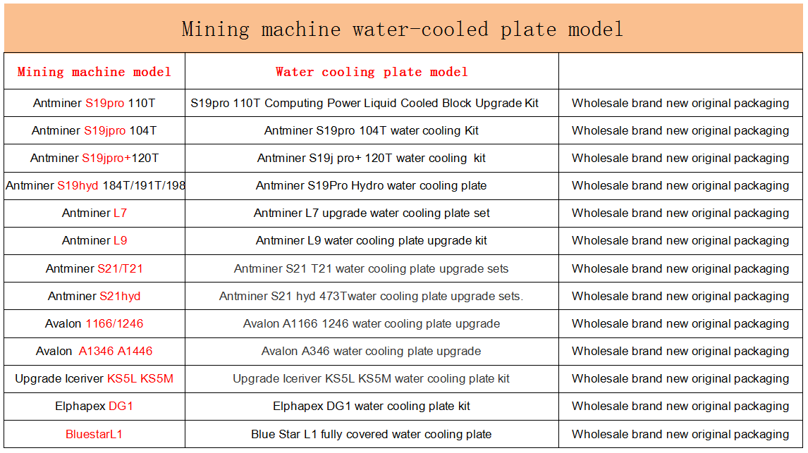 Kit di aggiornamento del blocco raffreddato liquido per alimentazione hash antminer
